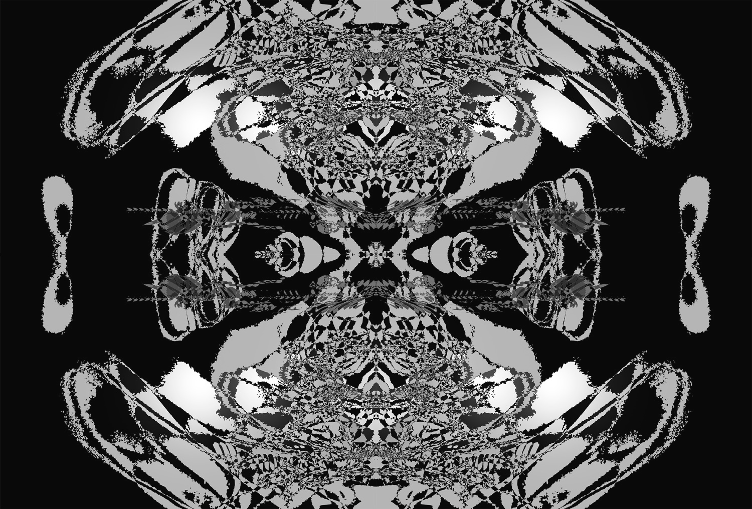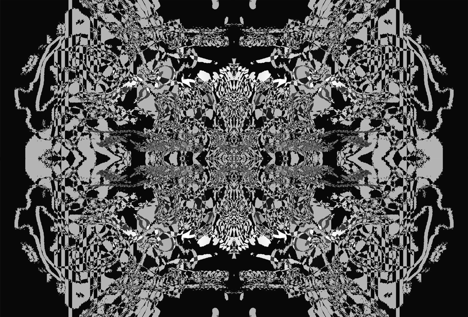 Examples of visual designs made by the interactive installation for solo show entitled "LAND" Prints on canvas 100x200 cm & on paper 29x21 cm